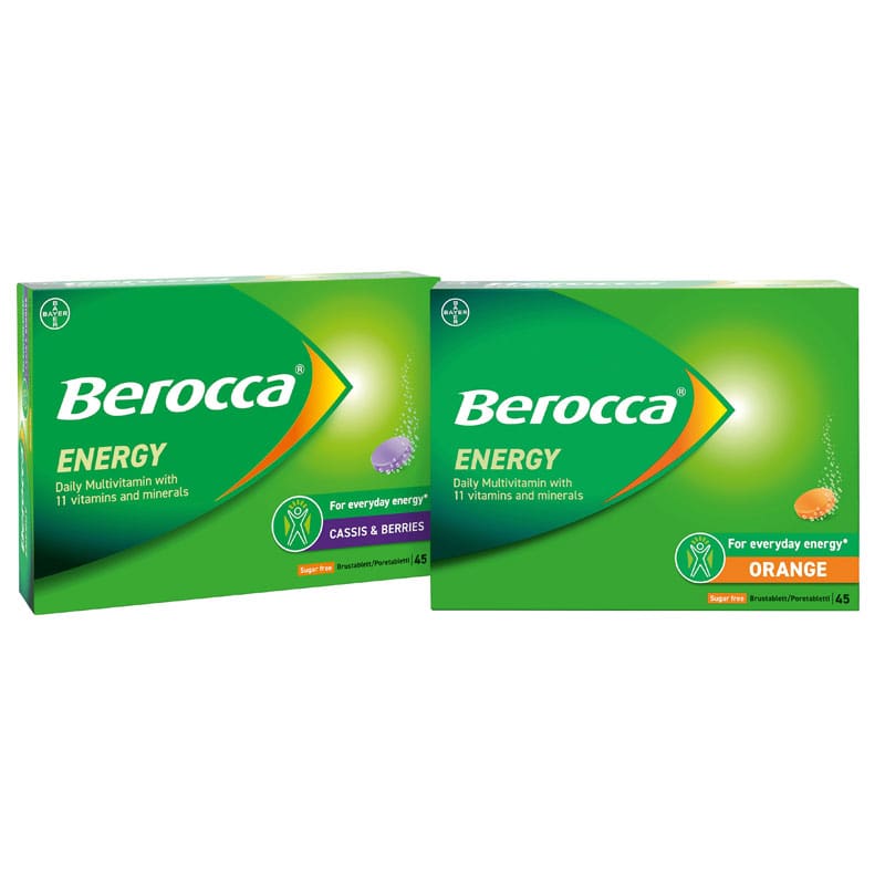 Berocca Energy Mango, Orange tai Cassis & Berries 45 poretabl.